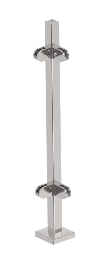 Firkant hjørnestolpe (90 grader) i rustfritt syrefast stål (AISI 316) utviklet for toppmontert glassrekkverk uten håndløper. Leveres komplett med glassklemmer og gummipakning for enkel og stabil montering.