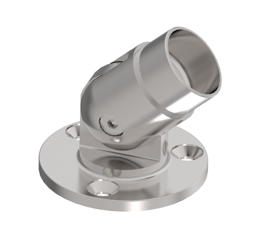 Veggfeste leddet i rustfritt stål (AISI 316) til rundt håndløper. Fleksibel og stabil løsning for montering på vegg med moderne design.